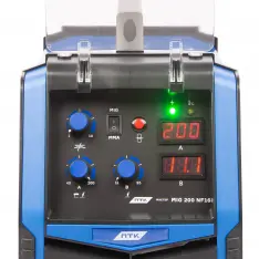 - Наличие двух цифровых дисплеев для контроля параметров сварки — дисплей сварочного тока и напряжения дуги.