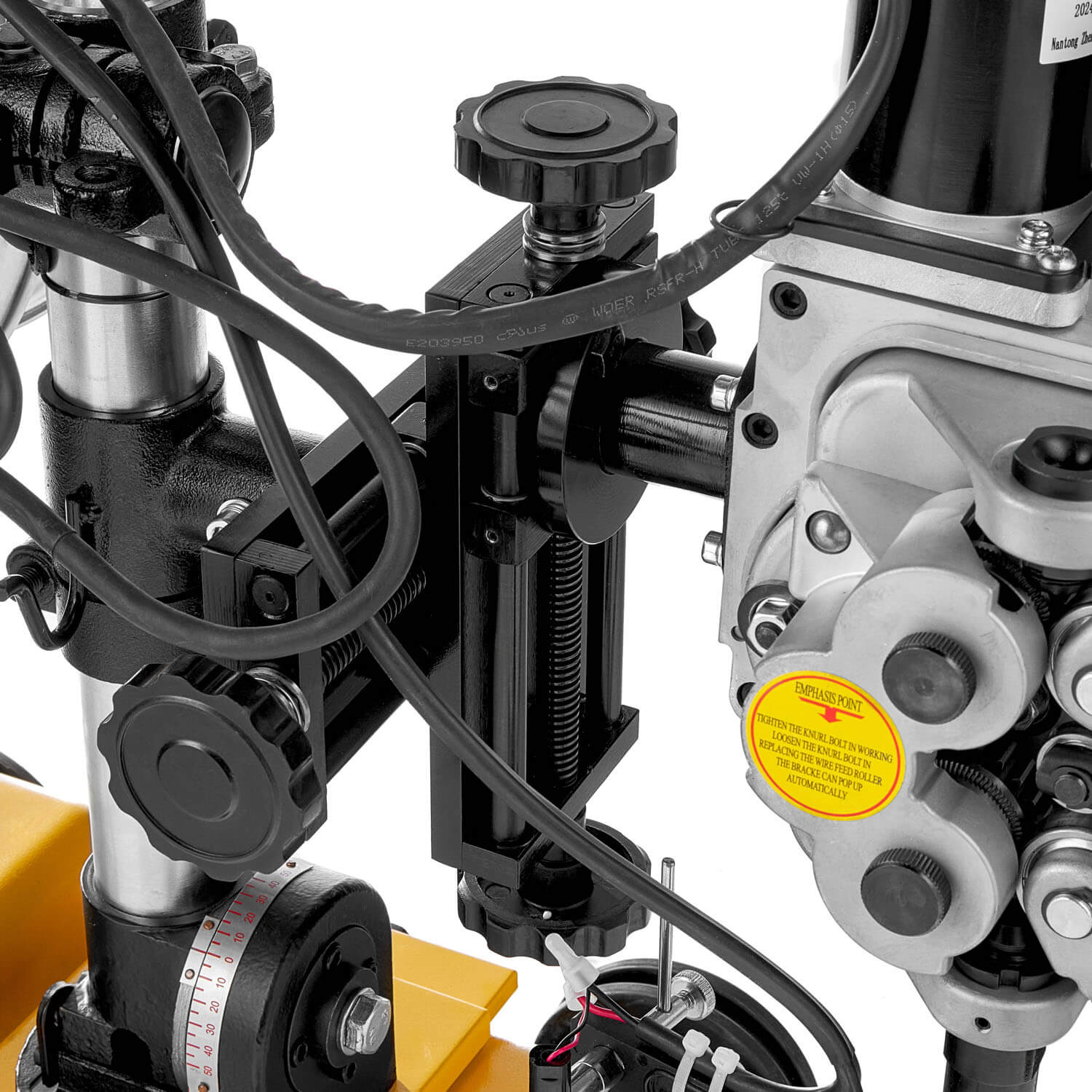 • Металлический четырехроликовый подающий механизм обеспечивает надежную и равномерную подачу сварочной проволоки.